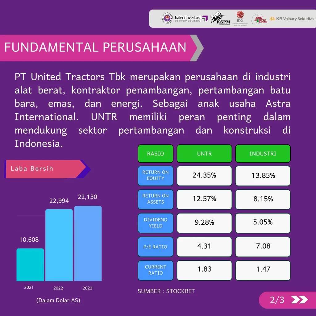 Kembali lagi pada Staff Favorite Stock!! Kali ini Kak Faiz akan membahas saham favoritnya, yaitu PT United Tractors Tbk [Kode saham: UNTR]. Disimak yuk di bawah ini: