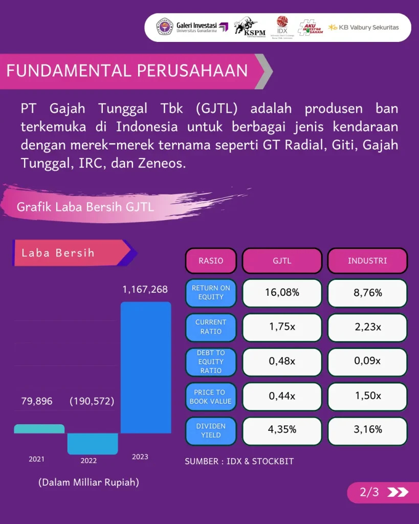 Kembali lagi pada Staff Favorite Stock!! Kali ini Kak Dera Hemalia akan membahas saham favoritnya, yaitu PT Gajah Tunggal Tbk [Kode saham: GJTL]. Disimak yuk di bawah ini: